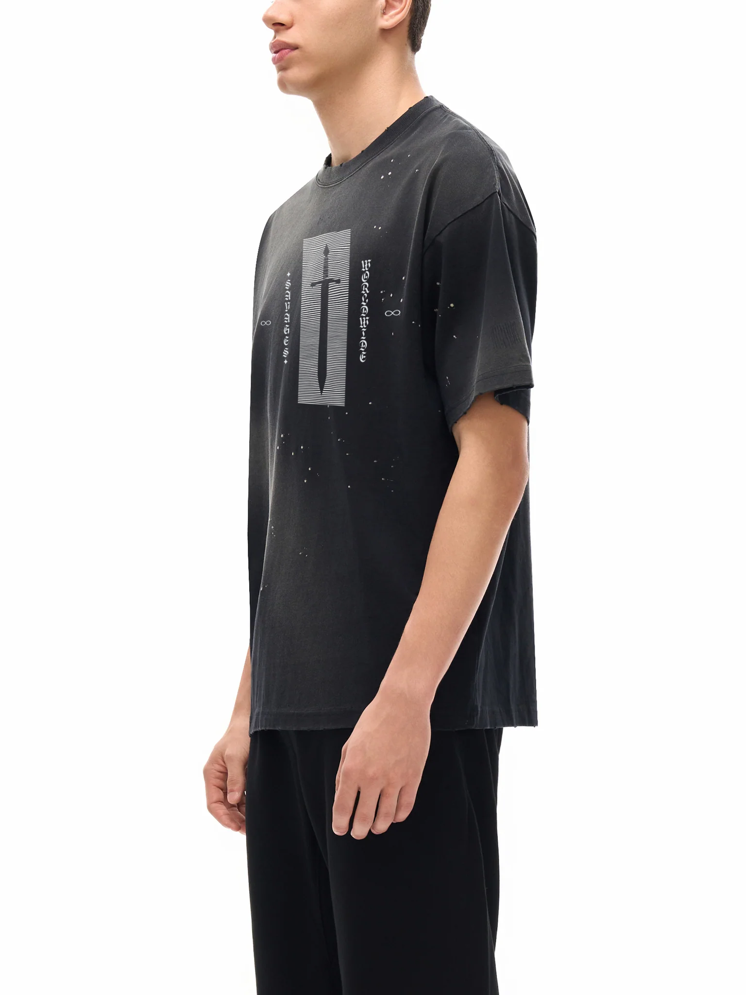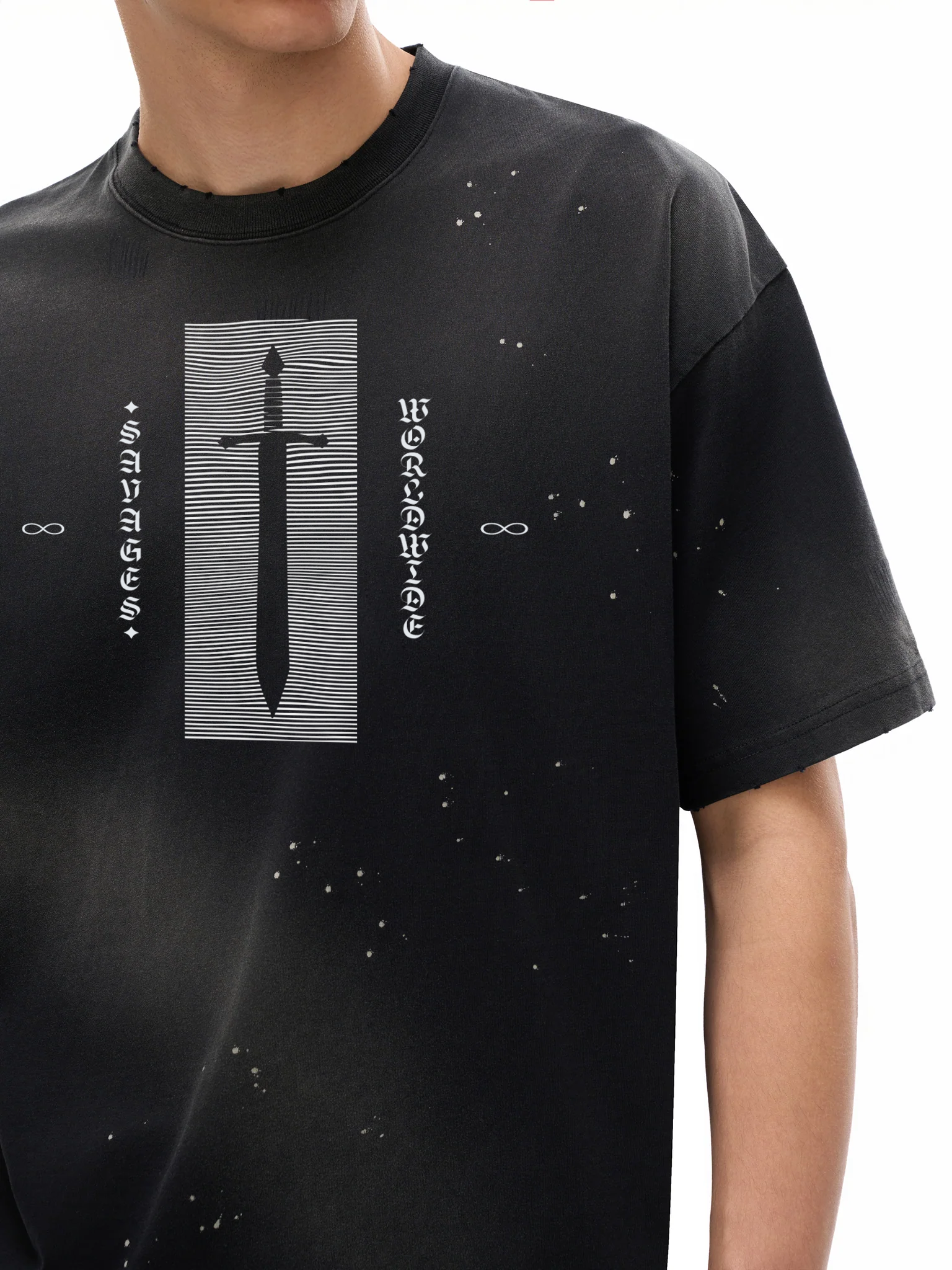 Hand-Frayed Savage Sunfade Paint Splatter T-Shirt